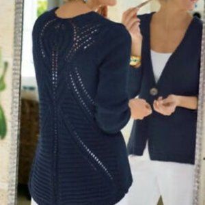 Soft Surroundings Navy Single Button Knit BOHO Cardi Sweater Size Medium