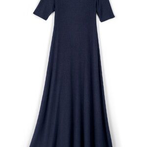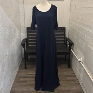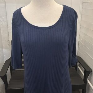 Soft Surroundings Navy Textured Short Sleeve Santiago Dress Size Large