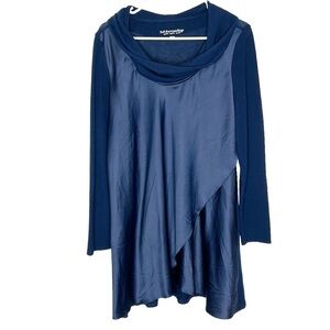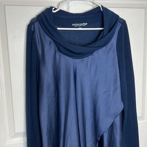 Soft Surroundings Navy Top with Satin Panel Front Size Medium