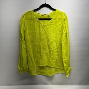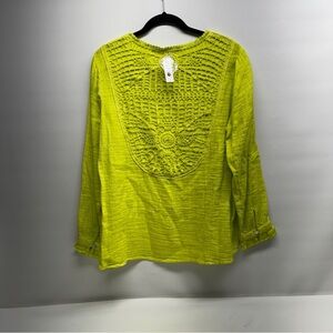 Soft Surroundings Neon Yellow Gauze Crochet Back Top size L nwt