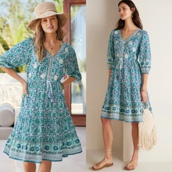 Soft Surroundings Nerissa Printed Boho Dress Size Small