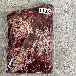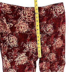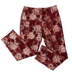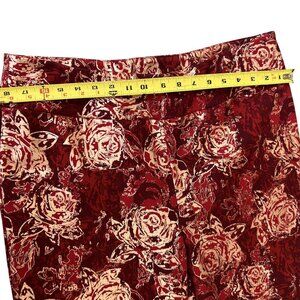 Soft Surroundings New Womens XL Red Gold Shiny Floral Print Perfect Ponte Straight Leg Serrano Full Length Pants Stretchy Leggings
