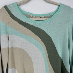 Soft Surroundings Nina Pullover Sweater XS Abstract Marble Flare Sleeves Green