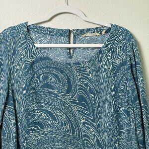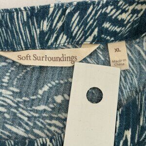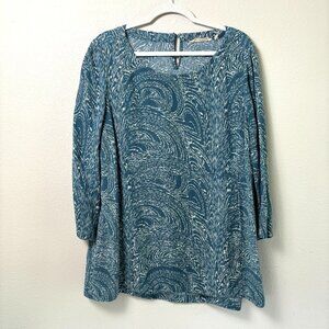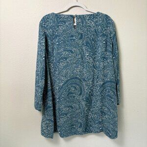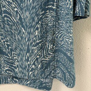 Soft Surroundings Oceo Gauze Tunic Top Size XL Blue Abstract 3/4 Sleeve Buttons