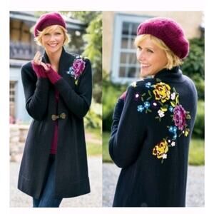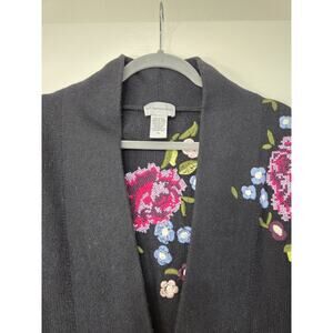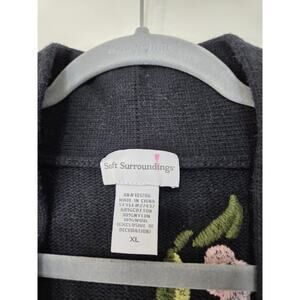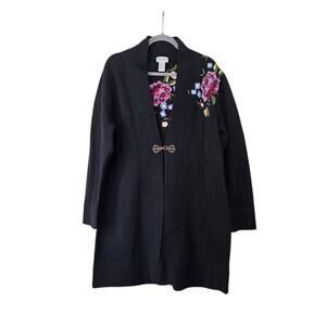 Soft Surroundings Okata Black Embroidered Floral Long Cardigan Sweater, Size XL