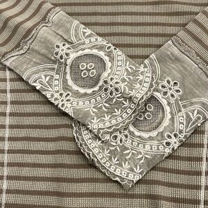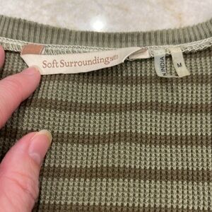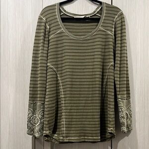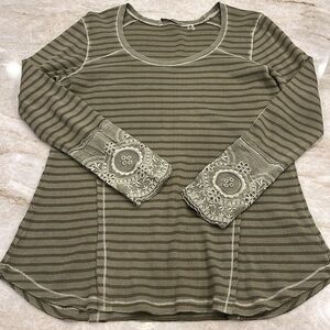Soft Surroundings Olive Waffle Knit Stripe Tuni Lace Cuff Boho Style Size Medium