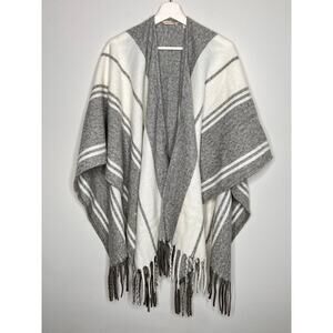 Soft Surroundings One Size Grey & White Striped Fringe Kimono