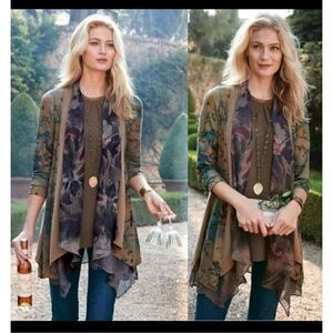 Soft Surroundings Open Cardigan Lg Sparkly Blue Green Mermaid Festival Event