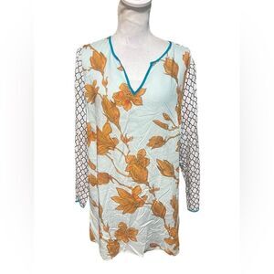 Soft Surroundings Top Womens large Ophelie Tunic Blue Floral V Neck Long Sleeve. Great pre-owned condition.