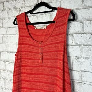 Soft Surroundings Orange Dress Tivoli Knit Maxi Sleeveless Button Stripe Beach M