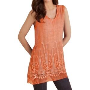 🌺 Soft Surroundings Orange Embroidered Tank Top