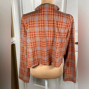 Soft Surroundings Orange Plaid Button Knit Sweater Large