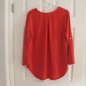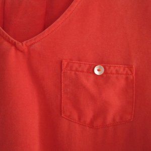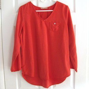 Soft Surroundings Orange Tencel Tunic Top Size S Roll Tab Sleeves V Neckline