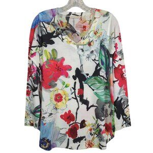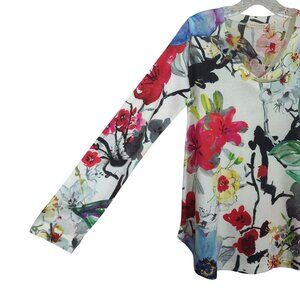 Soft Surroundings PXS Floral Print Long Sleeve V-Neck Top multicolored floral