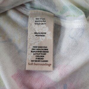 A lightweight and breathable long-sleeve soft surroundings top featuring a vibrant floral print. Crafted with a soft polyester blend, it offers comfort and style.