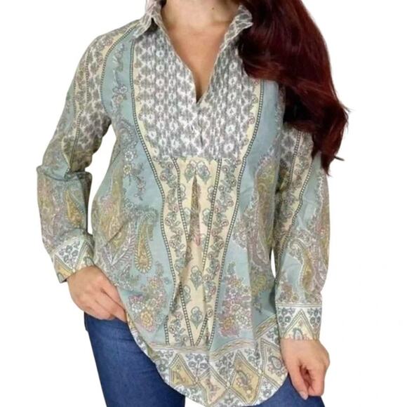 Soft Surroundings Paisley Floral Cotton Voile Tabitha Tunic Top Boho Medium
