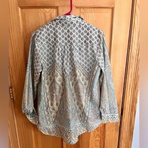 Elevate your wardrobe with this stylish paisley print top. Perfect for any occasion, this green top offers a blend of comfort and elegance. Pure Cotton and size PM by Soft surroundings. About 28 long and 22 across. 10