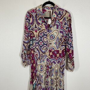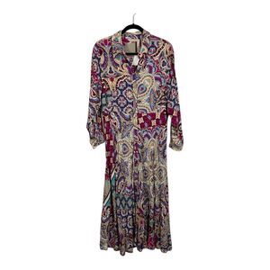 Soft Surroundings Pamero Soho Dress Womens Petite Medium Boho Maxi Button Up