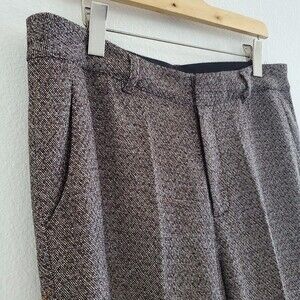 Soft Surroundings tweed dress pants with a wide leg, high rise, belt loops, slash pockets, zipper fly and hook & eye closure. Unlined. Brown.