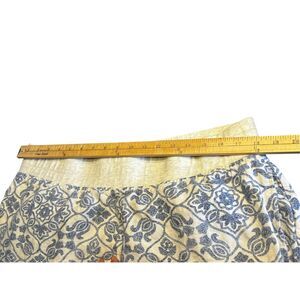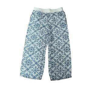 Soft Surroundings Pants XL 100% Linen Wide Leg Blue Ivory Damask Geometric