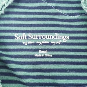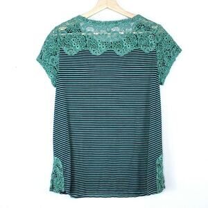 Soft Surroundings Women's Green Short Sleeve Parfait Stripe Floral Lace Overlay Blouse