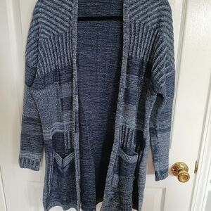 Soft Surroundings Patterned/Patchwork Blues Open Cardigan Size M