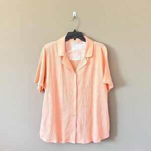 Peach slub button down top by Soft Surroundings! With mother of pearl buttons. Size Large. In great condition!