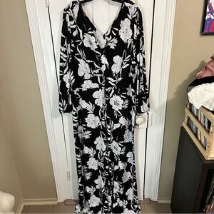 Soft Surroundings Penelope Long Sleeve Jumpsuit Black White Floral 3X T2