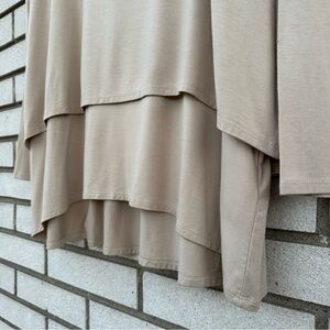 Soft Surroundings Perfect Layers Tiered Top Long Sleeve Split Back Beige Tan