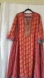Beautiful bohemian dress with intricate embroidery. Features a vibrant red base with gold accents. Gives boho, cottagecore, farmhouse, hipster, Bollywood vibes.