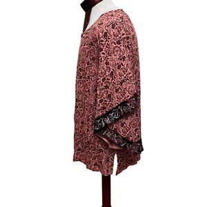 Soft Surroundings Pink Brown Floral Embroidered Bell Sleeve Tunic 1X Fairygoth