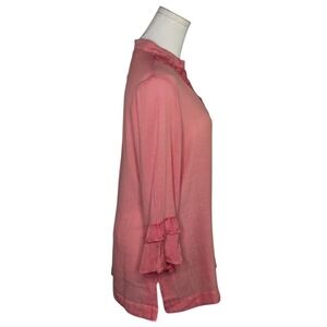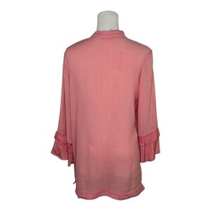 Soft Surroundings Pink Embroidered Tunic Blouse Small Ruffle Sleeve Boho