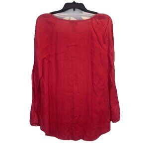 Soft Surroundings Pink Linen Roll Tab Sleeve Button Down Pleated Blouse Sz M