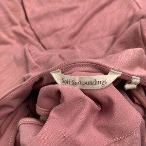 Soft Surroundings pink maxi dress with flutter sleeves and a V-neckline. Soft and comfortable, suitable for casual outings or relaxing at home.