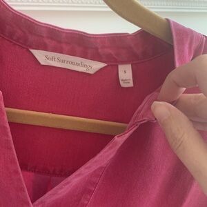 Soft Surroundings Pink V Button Flowy Boxy Top