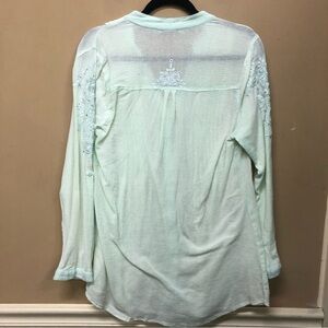 Soft Surroundings Pintuck Eyelet Tunic Top Gauzy Light Green Button Front Size M