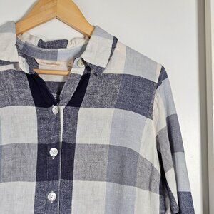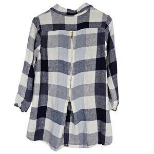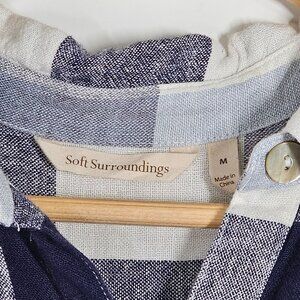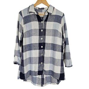 Soft Surroundings Plaid Blouse Button Up Zip Back Carreaux Linen Blend #2BU60 M