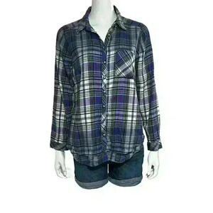 Soft Surroundings Plaid Button Up Long Sleeve Shirt Size Small
