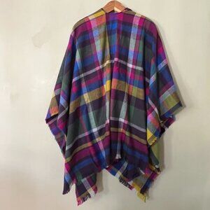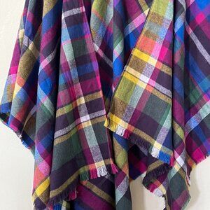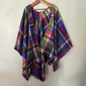 Soft Surroundings Plaid Multicolored Poncho Wrap Shawl OSFA Boho Winter Fall