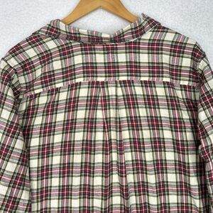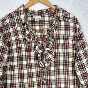 Soft Surroundings Plaid Ruffle Tunic Top Large 100% Cotton Button Front