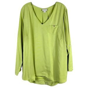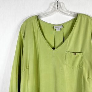 Soft Surroundings Plus Size 1X Top Light Green V Neck Pearl Button Lyocell 1618