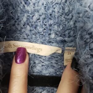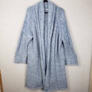Soft Surroundings Plus Size 2X Open Front Cardigan Sweater Light Blue Fuzzy Cozy