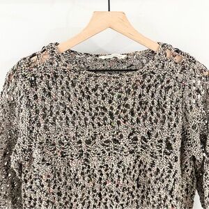 Soft Surroundings Pointelle Crochet Knit Sweater Gray Size XS Petite