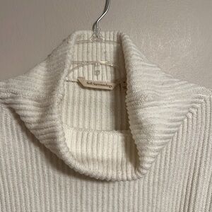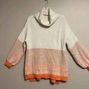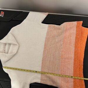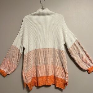 Soft Surroundings Porto White & Orange Ombré Cowl Neck Rib Sweater Puffed Sleeve