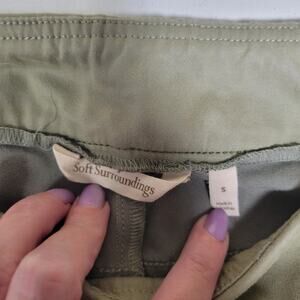 Soft Surroundings Pull On Capri Pants Size S Beige Button Cuffs Stretchy Casual