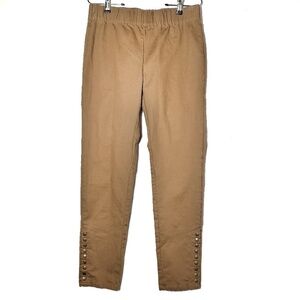 Soft Surroundings Pull On Rivet Ankle Pants S Tan Elastic Waist