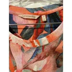 Soft Surroundings Pullover Top Marciana Artsy Pink Floral 3/4 Sleeve Tunic Small