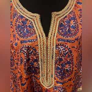 Soft Surroundings Pumpkin. & Blue Paisley Tunic w/ Gold Brocade V Neck’ size 1X