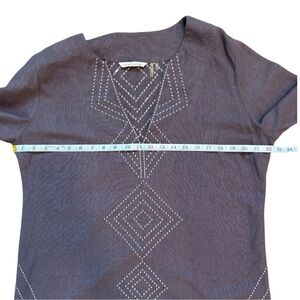 Soft Surroundings Purple Embroidered Tunic Blouse Silk Blend V-Neck Size Large