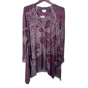 Soft Surroundings Purple Gray Floral Tunic Sweater Size XS NWT